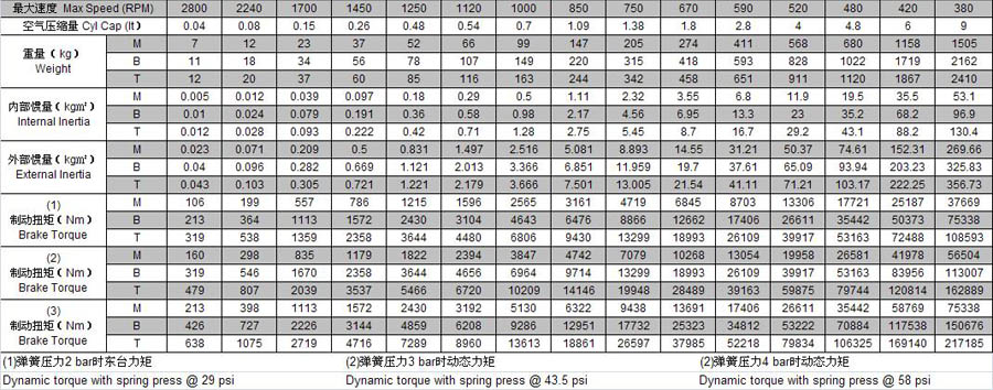 DMB气动制动器参数表